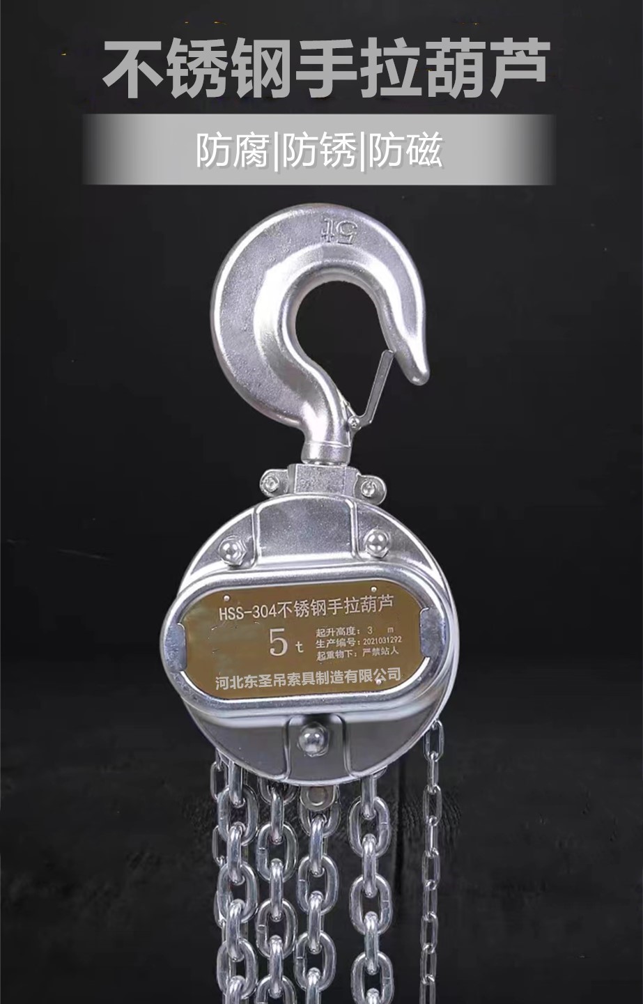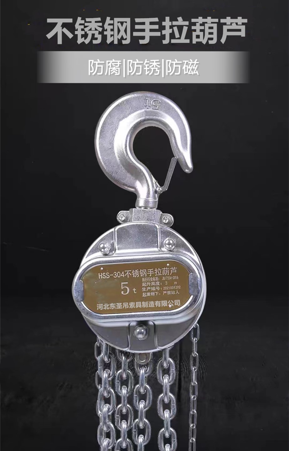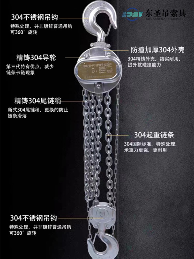 不銹鋼手拉葫蘆zui小額定載荷為0.5噸,zui大為30噸。